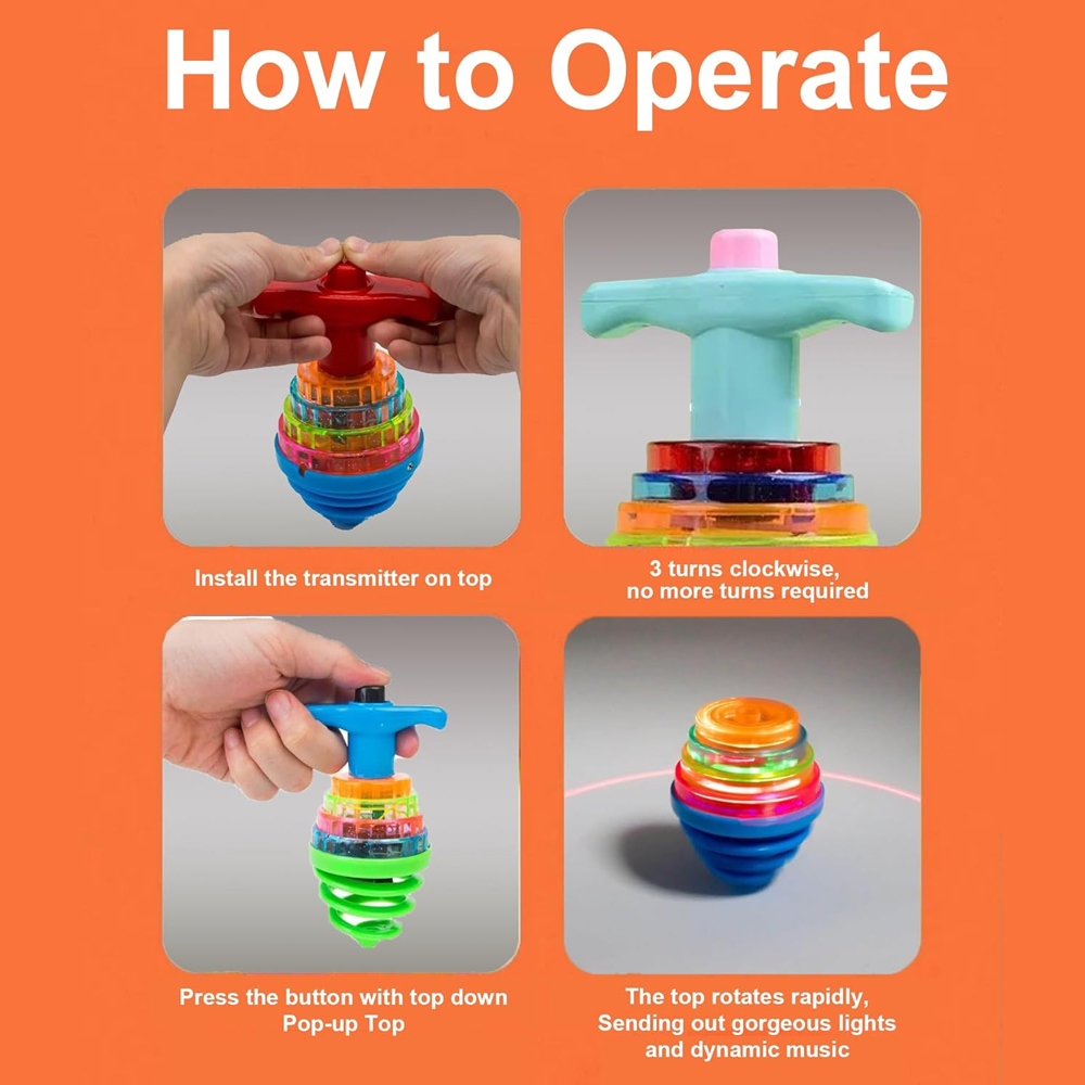 - ♥MUSICAL SPINNING TOP TOY :- This is a spinning top toy that plays music while spinning which makes it more exciting for your kids which they will enjoy during playtime.